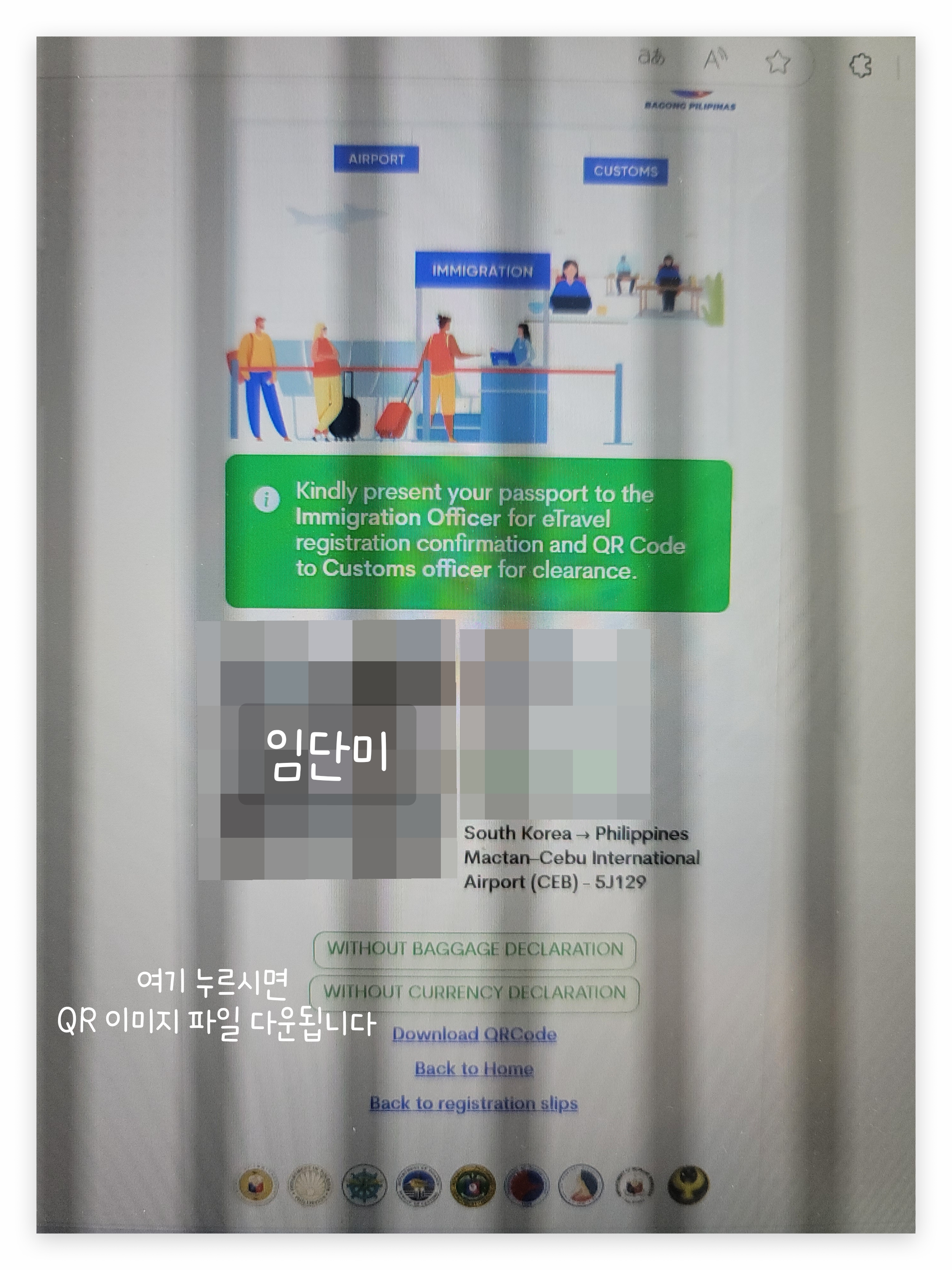 필리핀 세부여행 준비 - e트래블 작성 방법