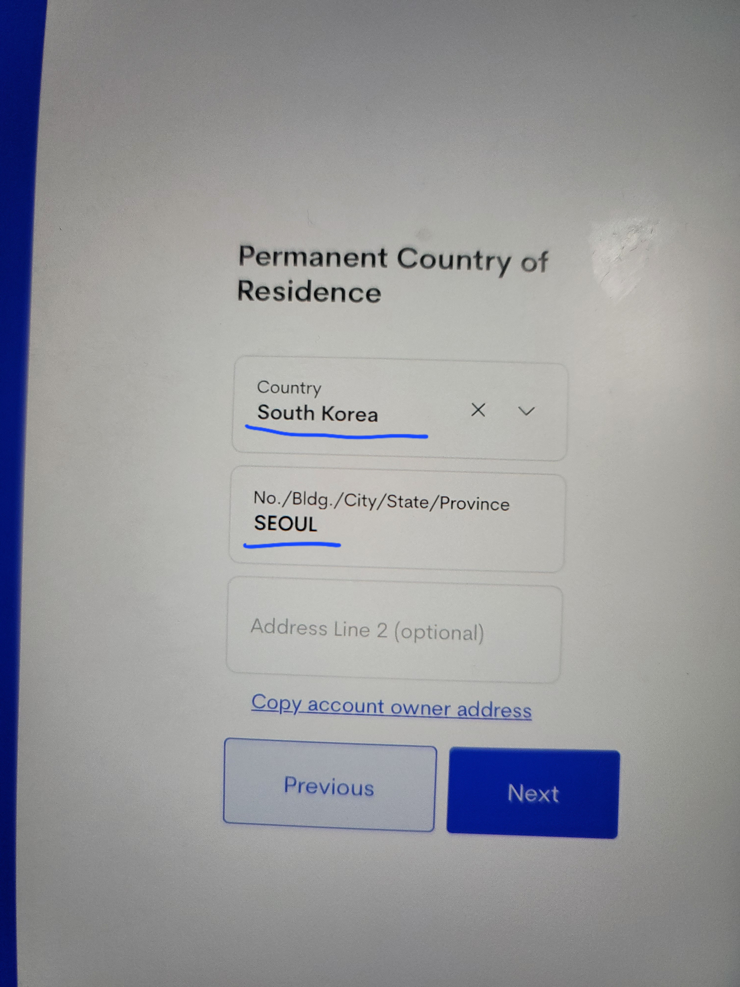 Passport inssuing Authority는 South Korea 선택