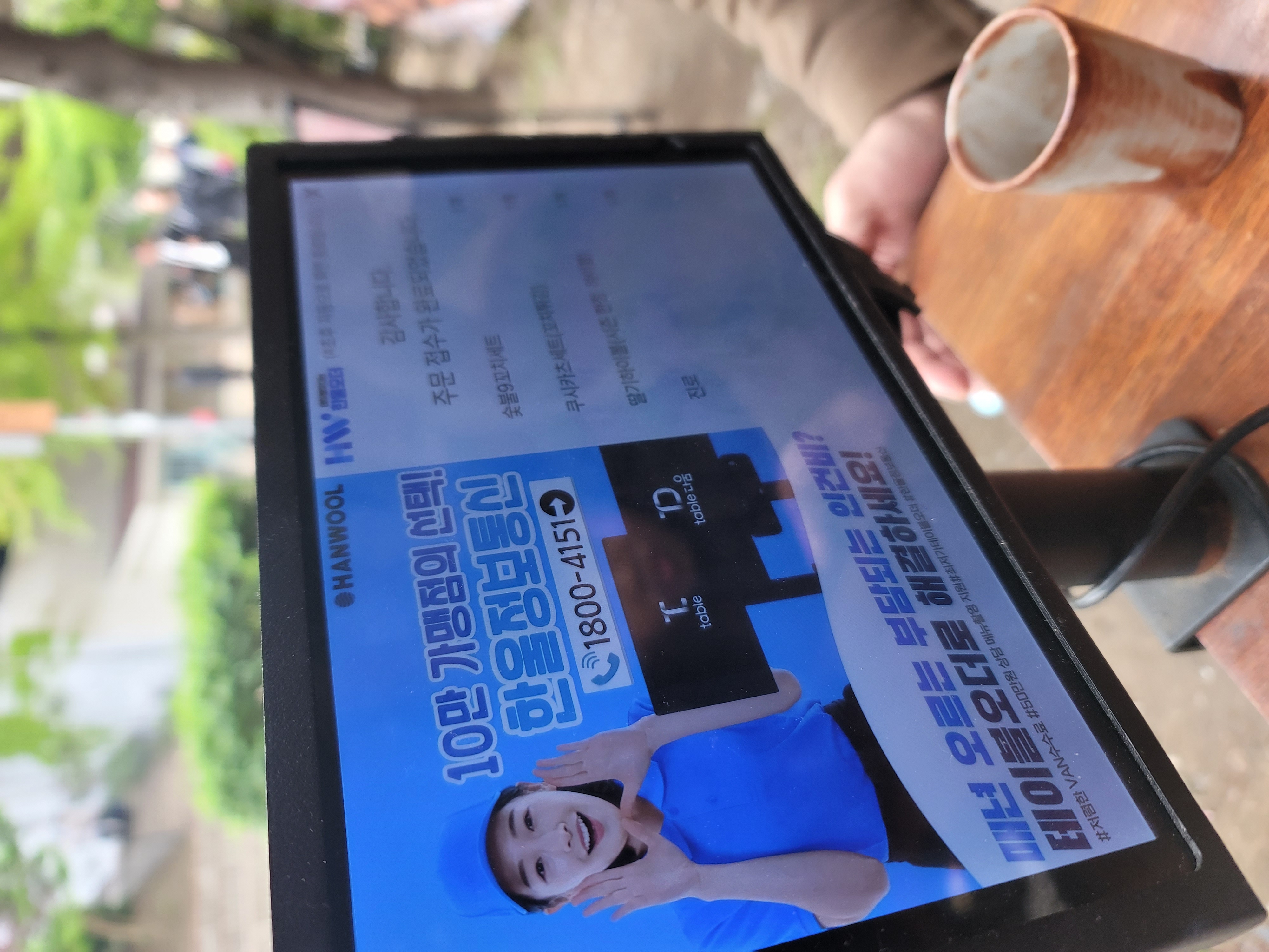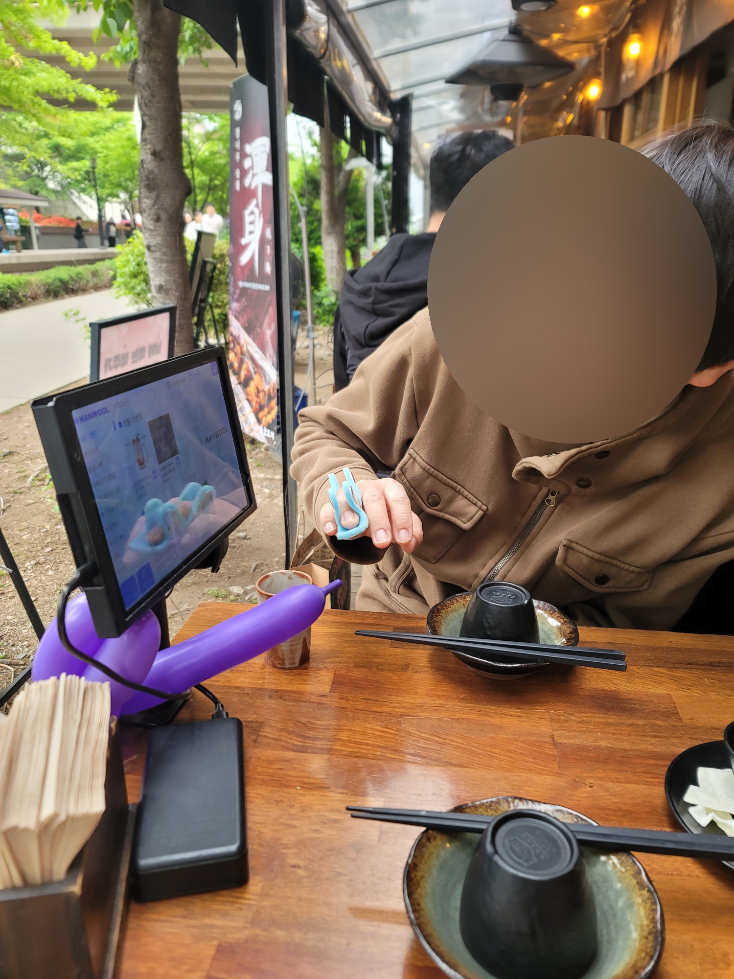 바깥 테라스 자리에 앉아서 먹게 되었다.