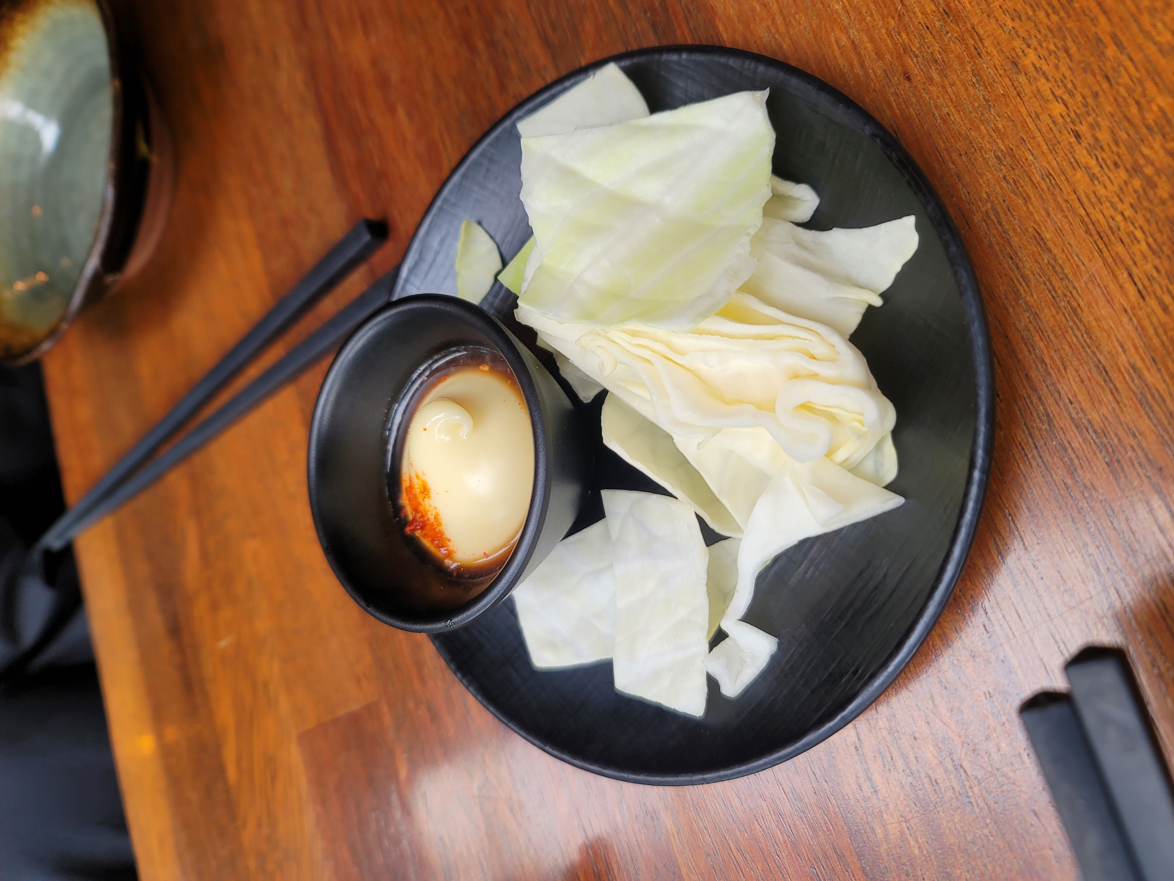 주문하면 양배추를 마요네즈 소스에