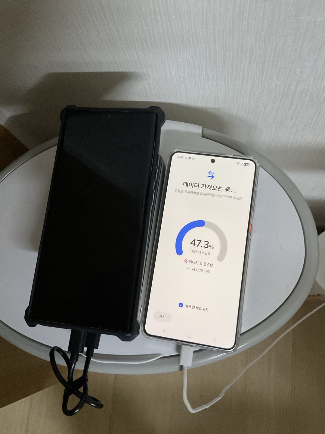 내 새 핸드폰으로 데이터를 옮기는 과정이었다.
