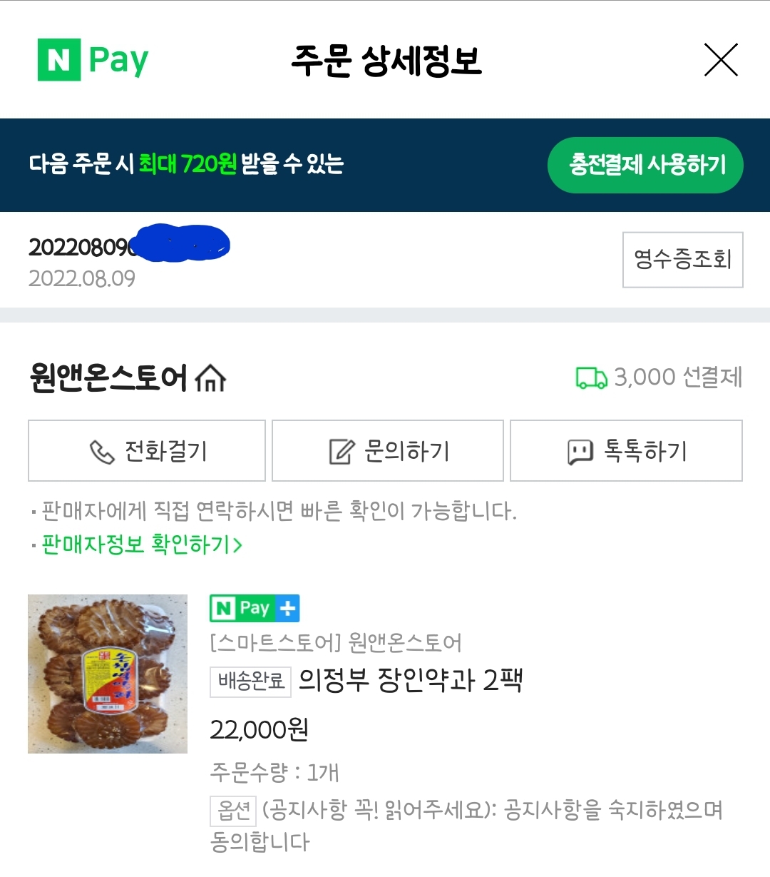의정부 장인 약과 2팩 구매가