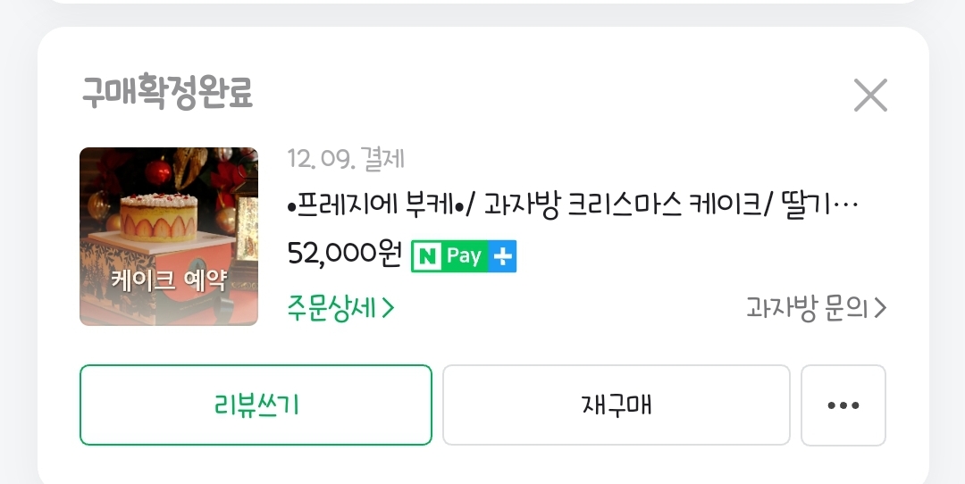 과자방에서 처음 크리스마스 케이크를 주문했다